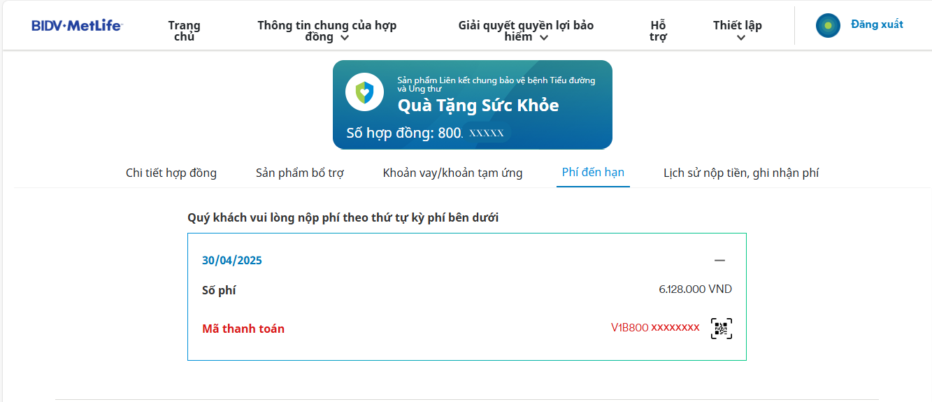 Đối với phí bảo hiểm tái tục: Mã QR được cung cấp tại Cổng thông tin tra cứu hợp đồng bảo hiểm – MetCare